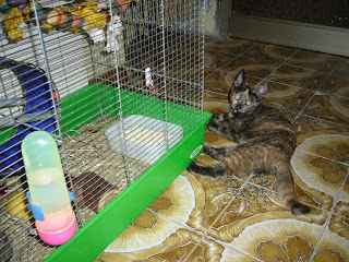 La sorpresa è stata che noi non abbiamo paura dei gatti!!! siamo estra-fighe ed io sono come al solito a girare nella ruota, così cerco di provocare l'instinto delle mie care sorelline!!! ihihihi!!! dai venite a prendermi ragazze!!!